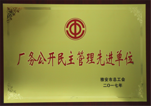 7月13日,市總工會組織召開了雅安市廠務(wù)公開民主管理專題培訓(xùn)會,會上對全市廠務(wù)公開民主管理示范單位先進(jìn)單位和示范班組進(jìn)行了表彰,我公司被評為“全市廠務(wù)公開民主管理先進(jìn)單位”,充分肯定了我公司廠務(wù)公開民主管理工作。