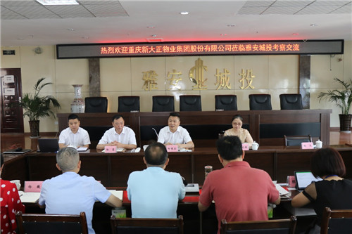 7月2日,重慶新大正物業(yè)集團股份有限公司助理總裁田維正一行到城投公司考察交流。市國資委、保安公司、城投公司、國資公司、蜀天物業(yè)相關負責人參加座談。