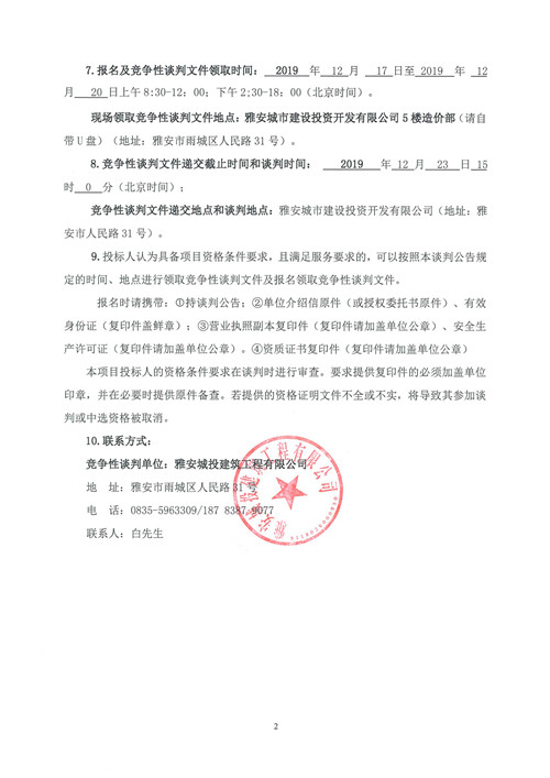 雅安市建安公司棚改區(qū)改造安置房項目主體檢測服務競爭性談判公告