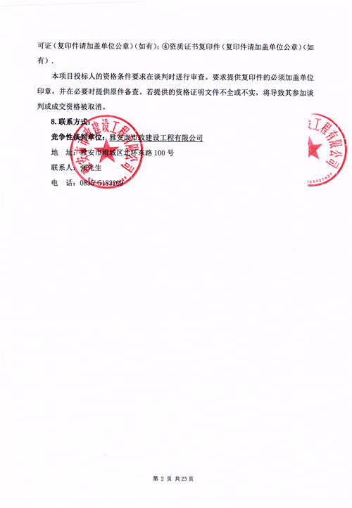 《雨城區(qū)城市管網(wǎng)和泵站恢復(fù)項(xiàng)目》材料采購安裝工程競爭性談判公告