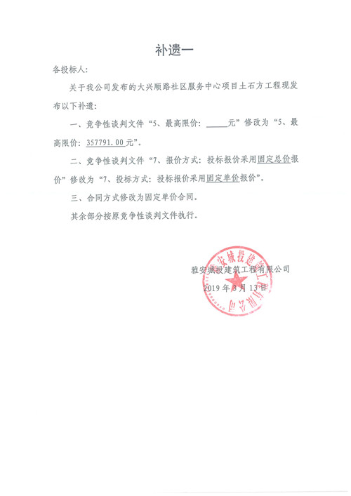 大興順路社區(qū)服務(wù)中心土方工程競爭性談判公告補遺