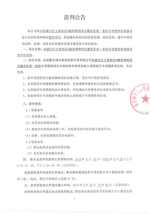 西康記憶文旅街區(qū)&藏茶博物館及藏茶茗茶一條街專(zhuān)項(xiàng)債券咨詢(xún)服務(wù)競(jìng)爭(zhēng)性談判公告