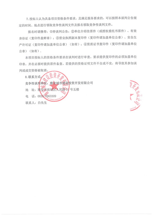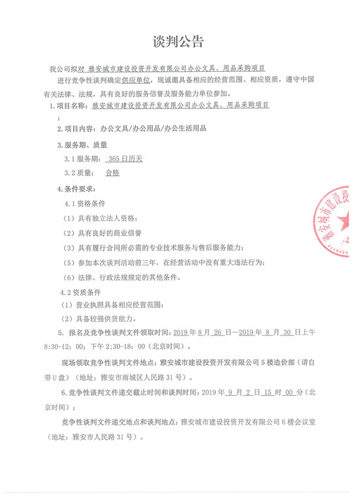 雅安城市建設(shè)投資開發(fā)有限公司辦公文具、用品采購項目競爭性談判公告(第二次)