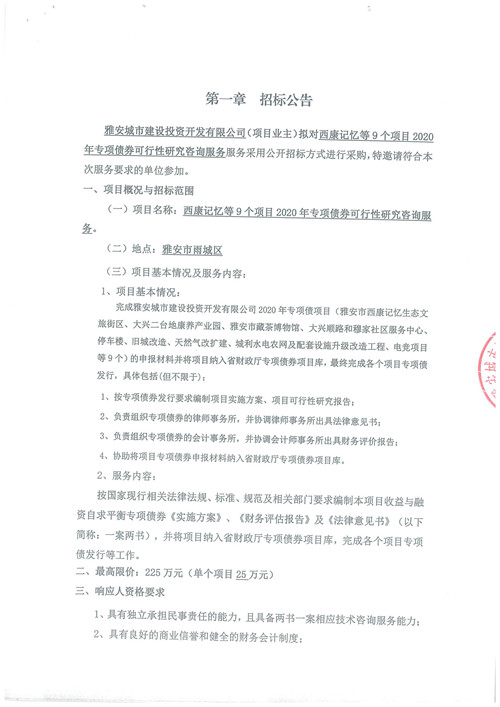 西康記憶等9個項(xiàng)目2020年專項(xiàng)債券可行性研究咨詢服務(wù)招標(biāo)公告