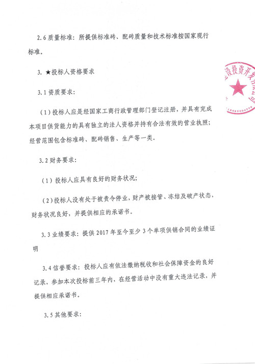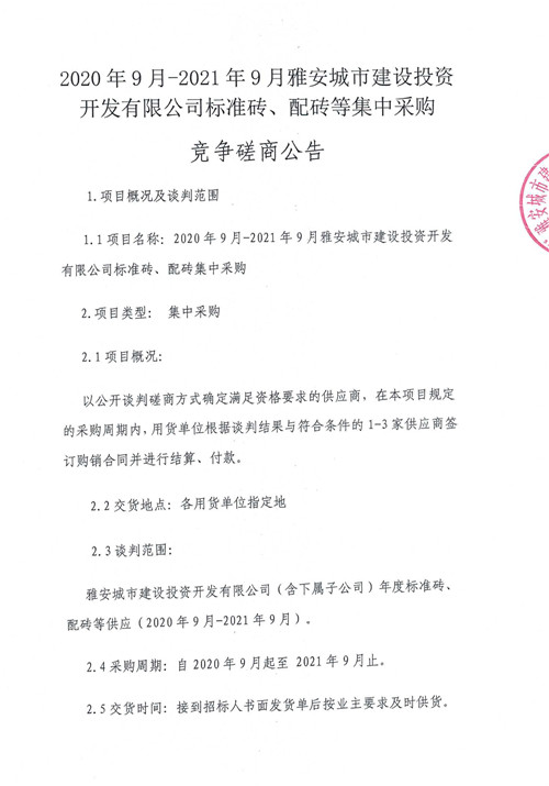 2020年9月-2021年9月雅安城市建設(shè)投資開發(fā)有限公司標準磚、配磚等集中采購 競爭磋商公告