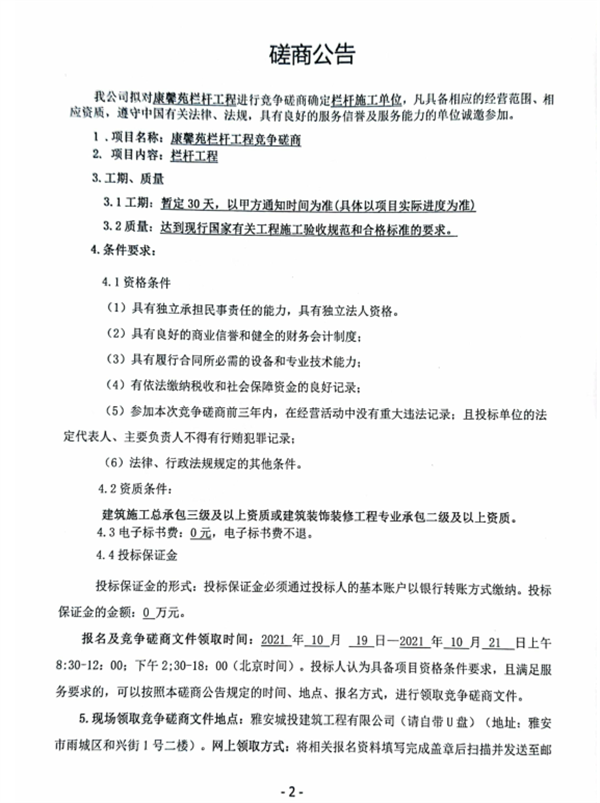 康馨苑欄桿工程競爭磋商公告