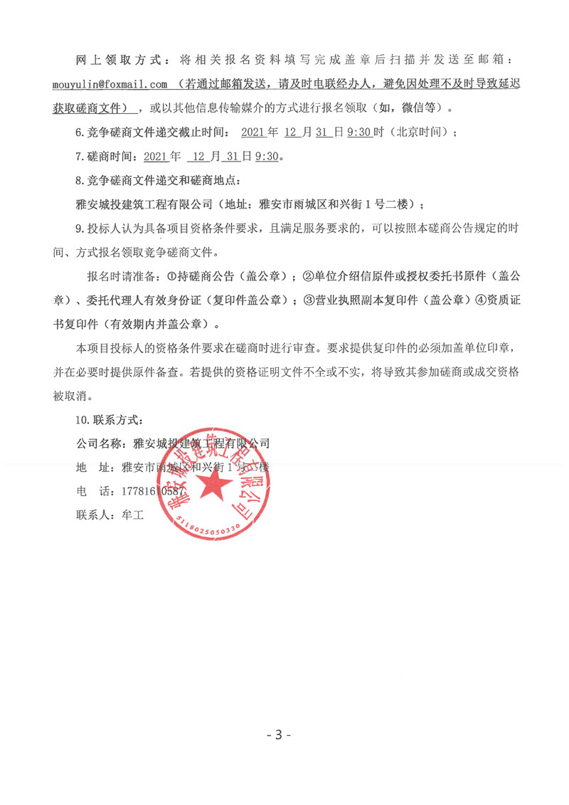 雅安市建安公司棚戶區(qū)改造安置房項目欄桿工程競爭磋商公告