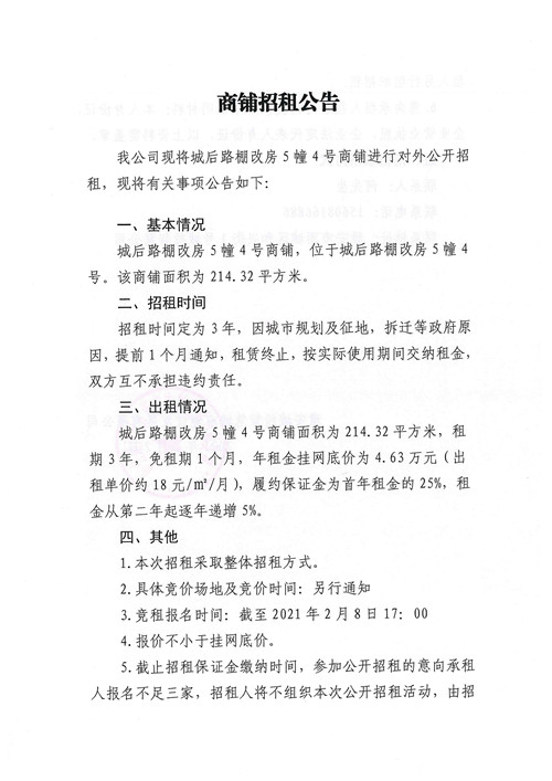 雅安城投智慧城市建設(shè)發(fā)展有限公司商鋪招租公告
