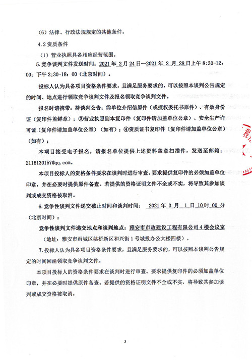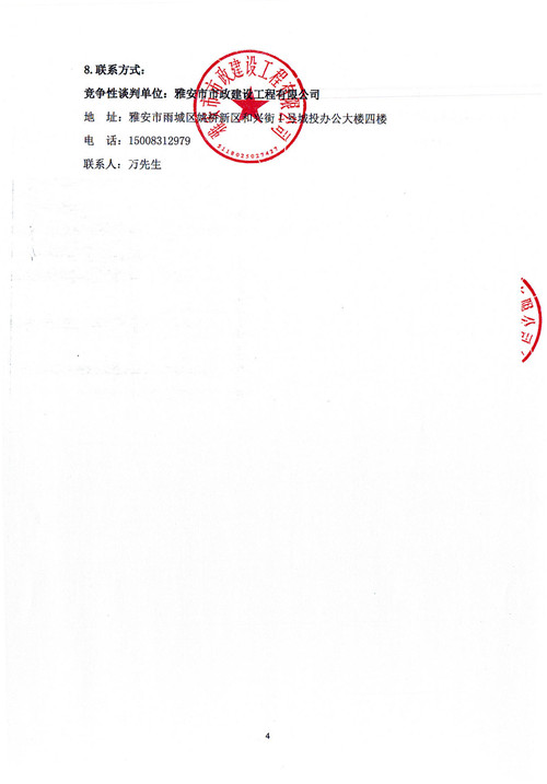 市政公司雨城大道一、二標段透水磚采購競爭性談判公告