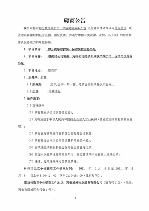 城投物業(yè)公司部分秩序維護崗、保潔崗位勞務外包競爭性磋商公告