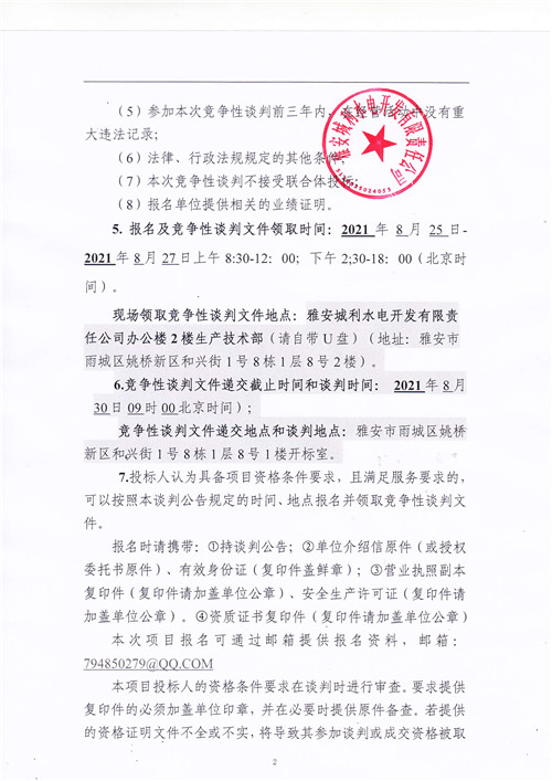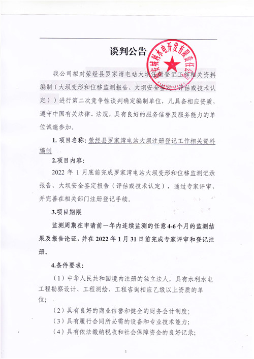 城利水電公司滎經(jīng)縣羅家灣電站大壩注冊登記工作相關(guān)資料編制競爭性談判公告(第二次)