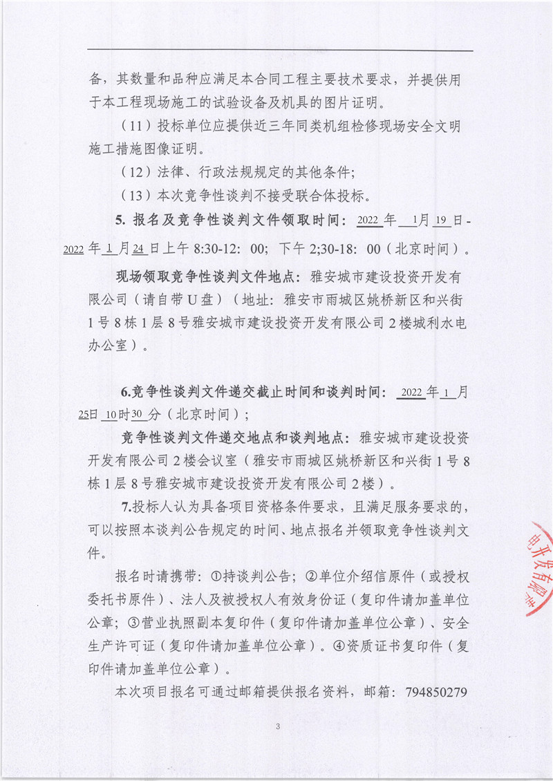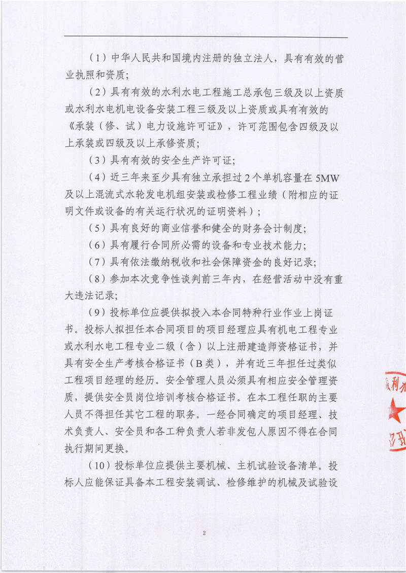 雅安城利水電公司2021年度水輪發(fā)電機檢修工程競爭性談判公告