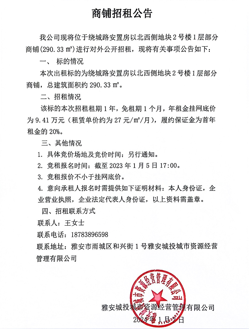 繞城路安置房以北西側地塊2號樓1層部分商鋪招租公告