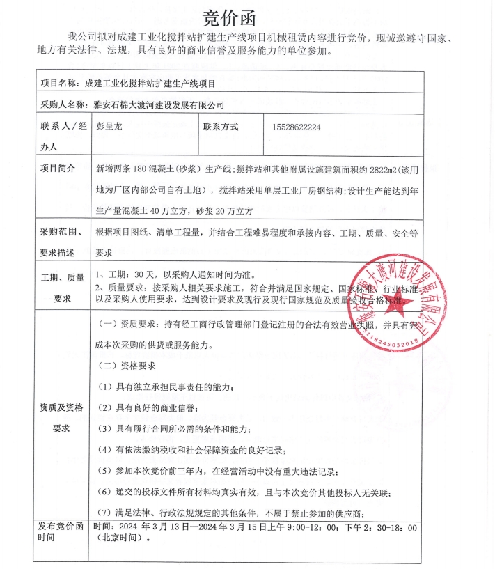 成建工業(yè)化攪拌站擴(kuò)建生產(chǎn)線項(xiàng)目機(jī)械租賃內(nèi)容競價公告