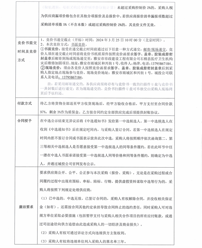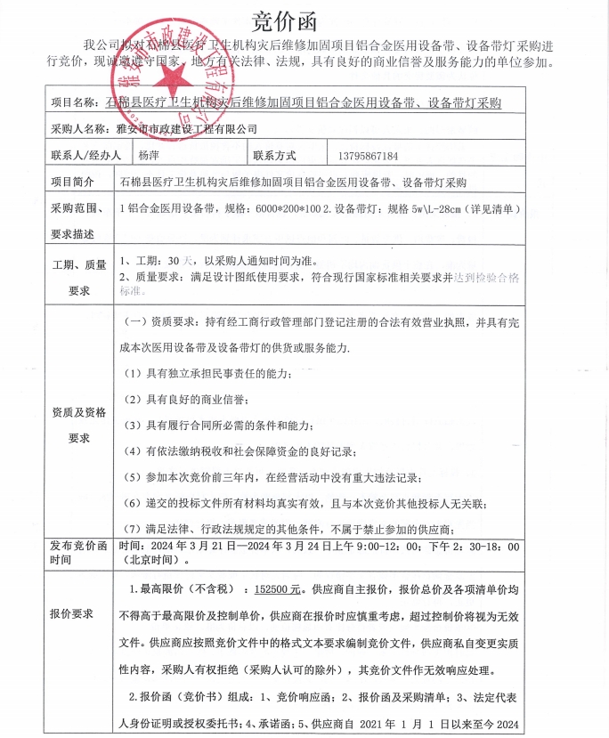 石棉縣醫(yī)療衛(wèi)生機構災后維修加固項目鋁合金醫(yī)用設備帶、設備帶燈采購競價公告