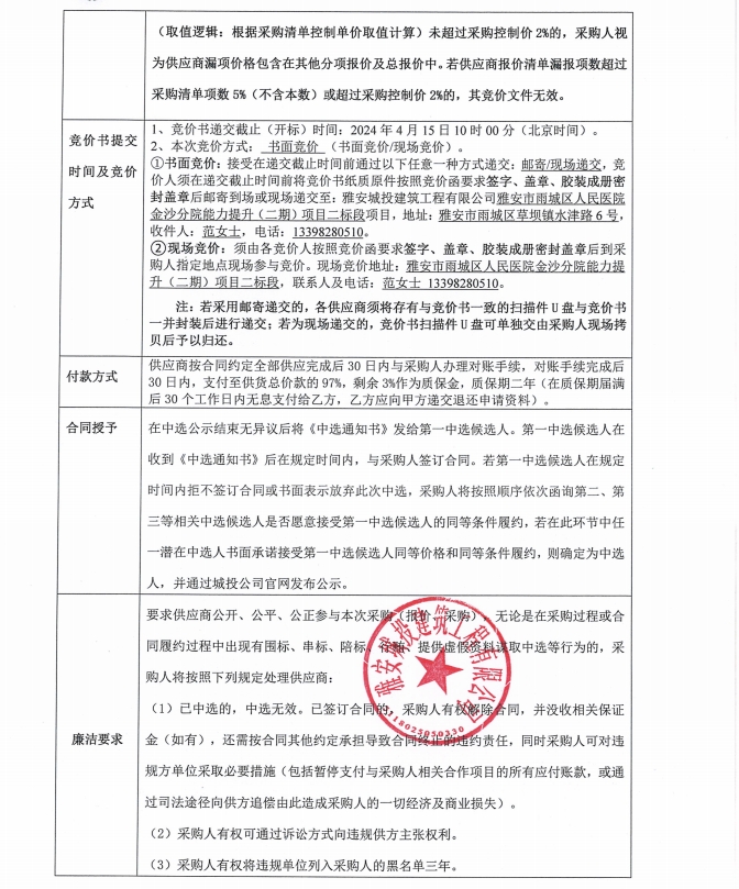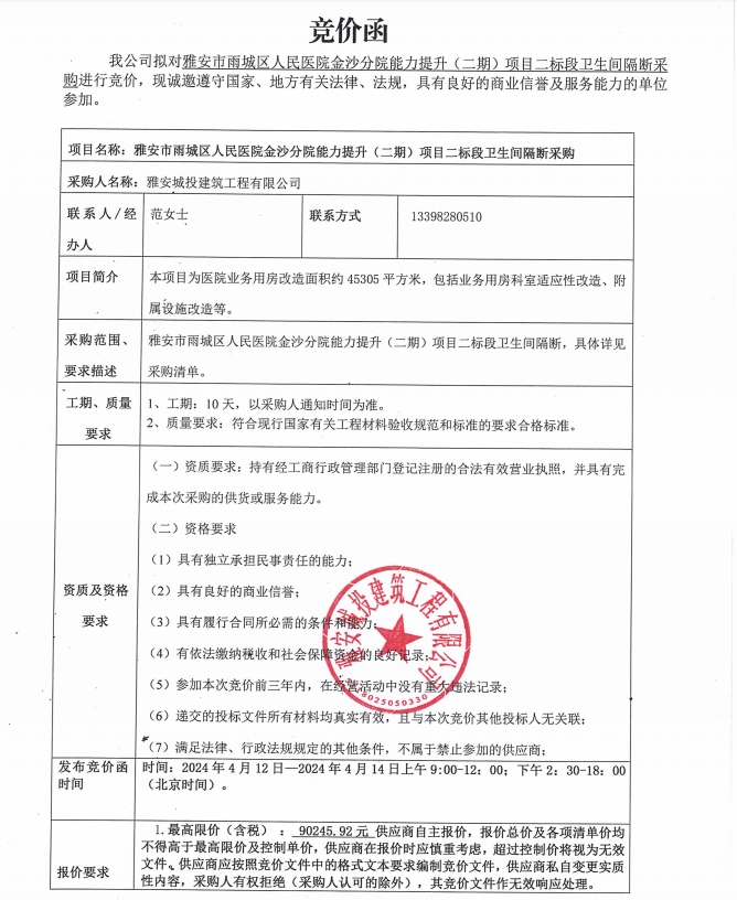 雅安市雨城區(qū)人民醫(yī)院金沙分院能力提升(二期)項(xiàng)目二標(biāo)段衛(wèi)生間隔斷采購競價(jià)公告