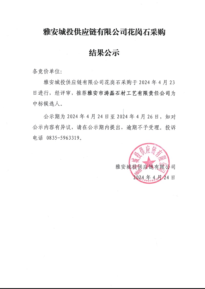 雅安城投供應(yīng)鏈有限公司花崗石采購結(jié)果公示
