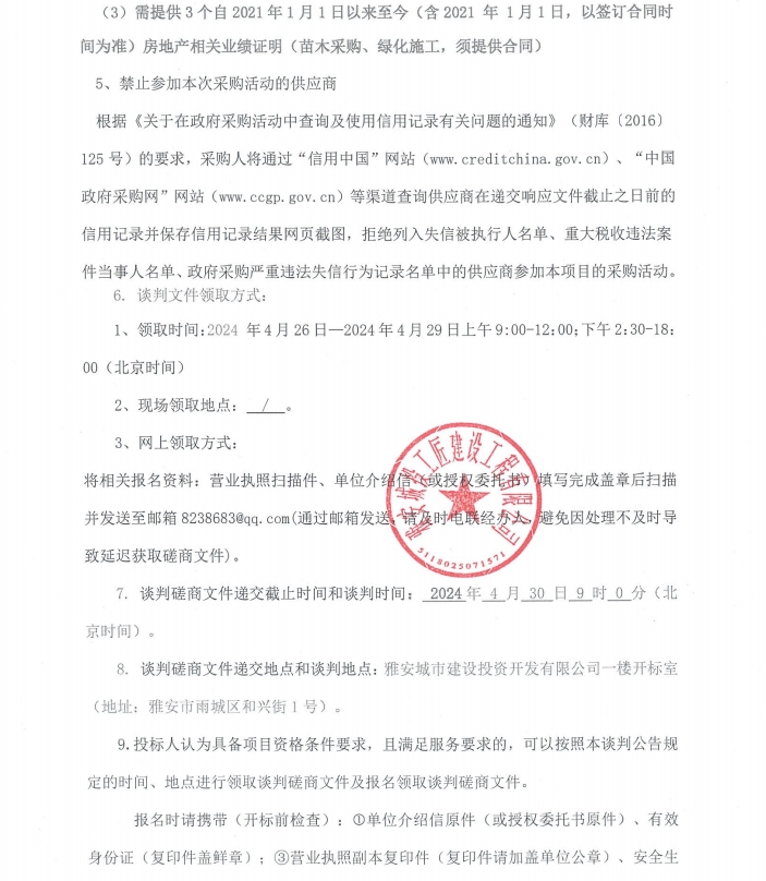 雅州壹號(hào)院總坪項(xiàng)目(樣板段)綠化材料采購(gòu)談判磋商公告
