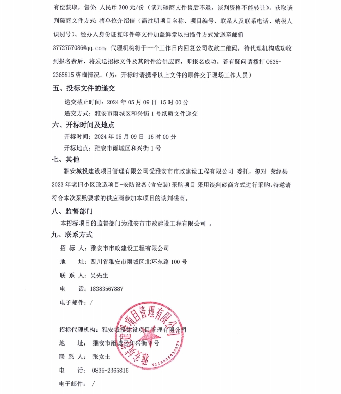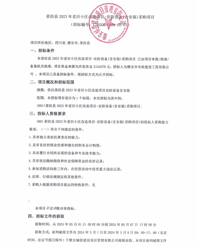 滎經(jīng)縣2023年老舊小區(qū)改造項(xiàng)目安防設(shè)備(含安裝)采購項(xiàng)目公告