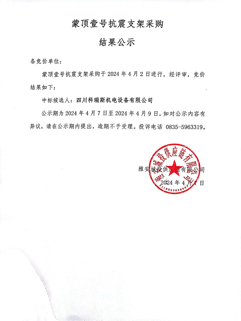 蒙頂壹號(hào)抗震支架采購結(jié)果公示