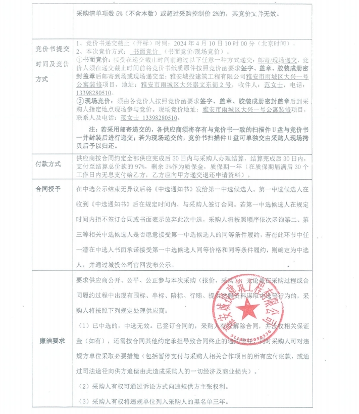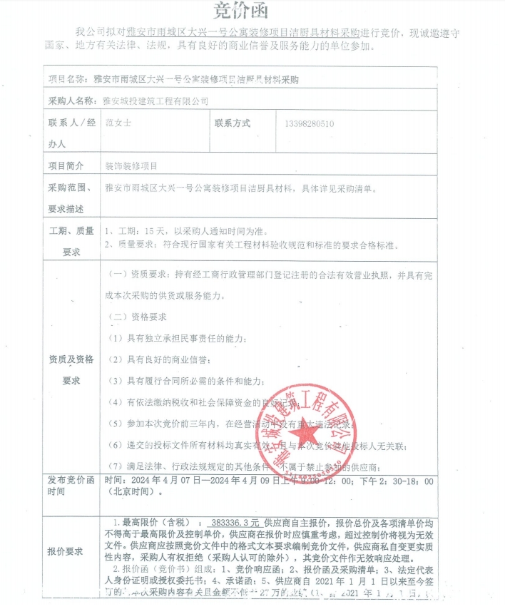 雅安市雨城區(qū)大興一號(hào)公寓裝修項(xiàng)目潔廚具材料采購(gòu)競(jìng)價(jià)公告