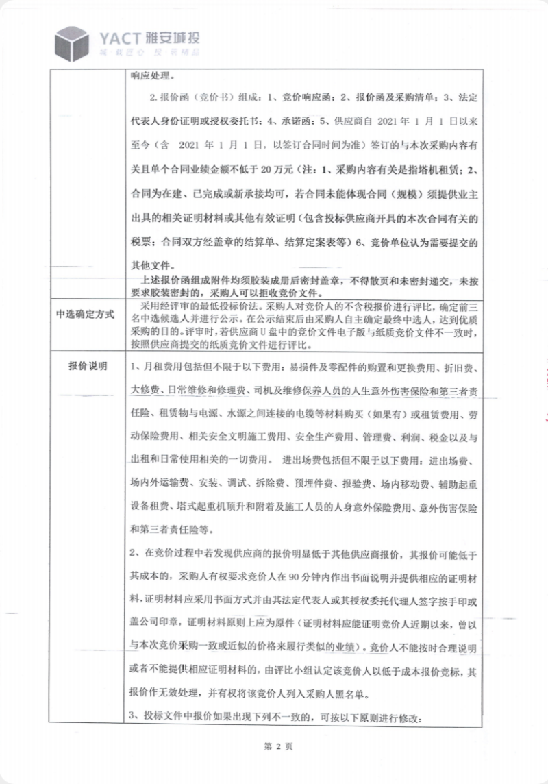 石棉縣大熊貓國(guó)家公園保護(hù)管理設(shè)施項(xiàng)目(一期)塔機(jī)租賃(第二次)競(jìng)價(jià)公告
