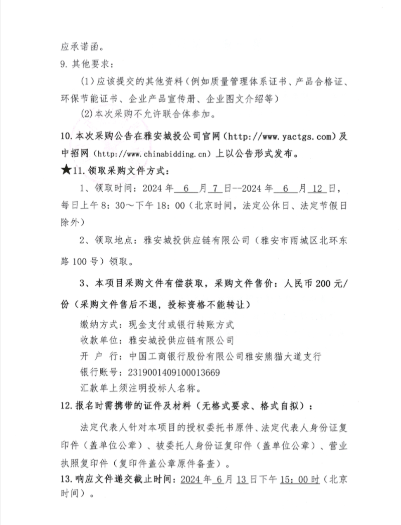 2024年6月-2025年5月雅安城投供應(yīng)鏈有限公司混凝土、砂漿采購公告