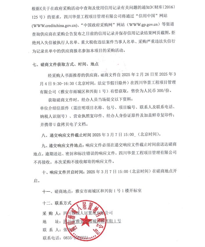 雅州印項目前期物業(yè)服務(wù)公司采購項目磋商邀請