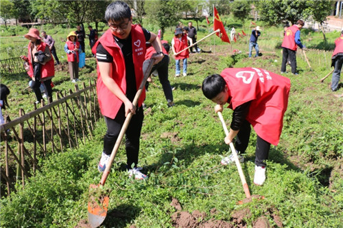 在張碗村“一碗果蔬”基地,志愿者們與村民協(xié)作種植菜苗,田地間一片春耕忙碌的景象。經(jīng)過(guò)半天的耕作,志愿者隊(duì)伍完成了600株菜苗的種植。