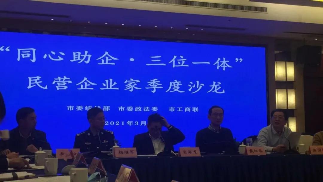 為貫徹習總書記關于做好新時代民營經(jīng)濟統(tǒng)戰(zhàn)工作的重要指示精神,進一步加強政法機關與工商聯(lián)的協(xié)作,推動全市民營經(jīng)濟統(tǒng)戰(zhàn)工作協(xié)調(diào)機制落細落實,提高法律服務保障民營企業(yè)的精準度和實效性。由市統(tǒng)戰(zhàn)部、市工商聯(lián)牽頭,聯(lián)合市政法委,邀請中級法院、市檢察院、市公安局、市司法局、和相關民營企業(yè),共同開展“同心助企·三位一體”民營企業(yè)家季度沙龍活動。